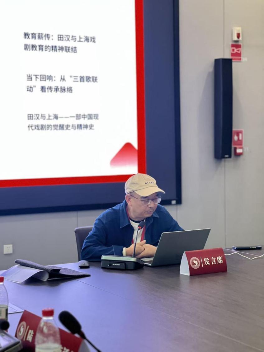 俞建村教授既是《新·回春之曲》的导演,也是本次活动学术研讨版块的参与者。他在会上系统阐述了田汉先生与上海戏剧教育的关系,特别是与上海戏剧学院之间的关联,同时还对部分青年学者的论文作了点评。