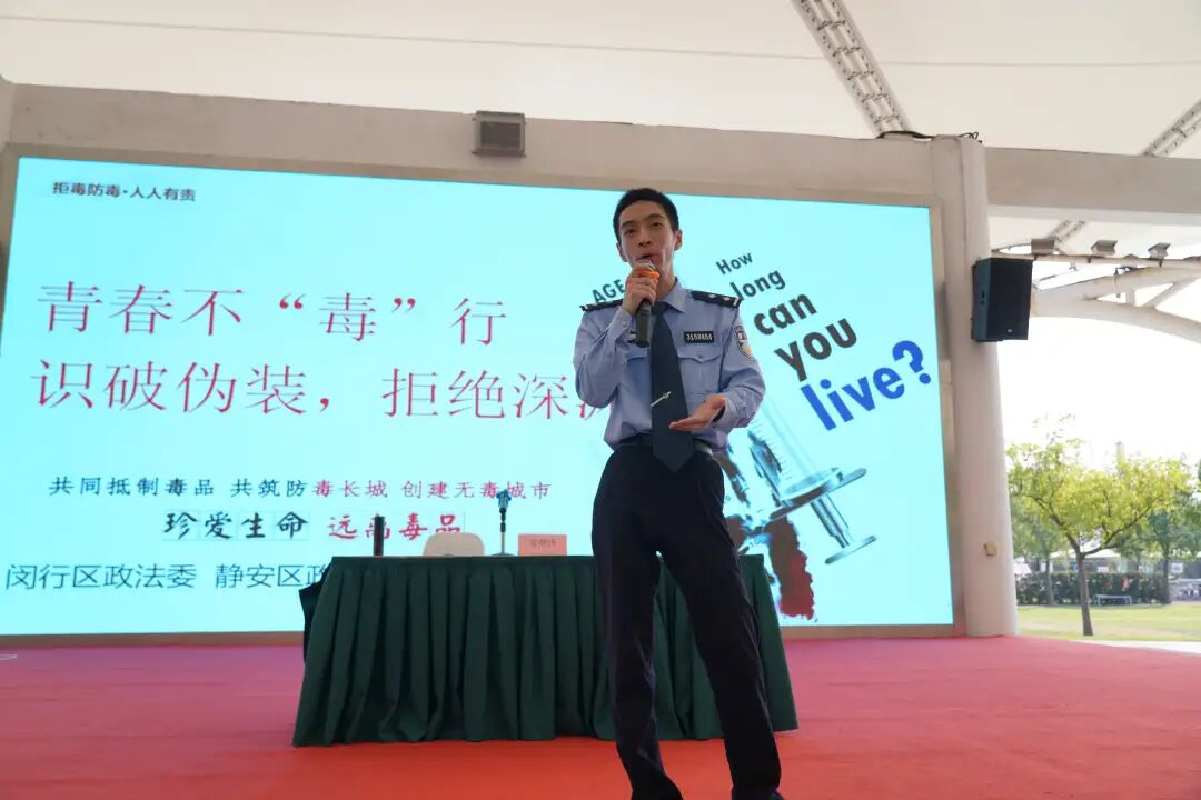 上海市“沪小安”禁毒讲师团讲师、上海市崧泽强制隔离戒毒所四级警长张继涛老师用幽默个性的语言以及深入人心的表演,让同学们深刻意识到禁毒的重要性。