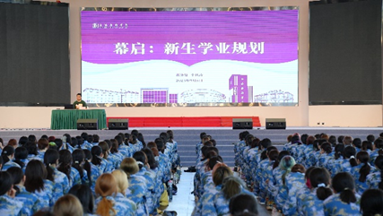 我校党委学生工作部(处)干舒萍老师分析了当下社会大学生就业痛点,结合数据,对同学们将来的路径规划做出了提示,同时也介绍了广泛而专业的发展平台,为大家点亮了未来的努力方向。在这一堂充满干货的课程中,同学们对即将到来的大学生活真正有了实感。