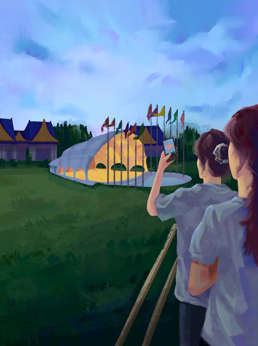 迷彩绿的课堂,是他们创作的起点。于细节中淬炼,在训练中全力以赴。同学们将训练场上的汗水转化为创作源泉,借AI与电子绘画之笔,展现上戏学子蓬勃向上的力量。