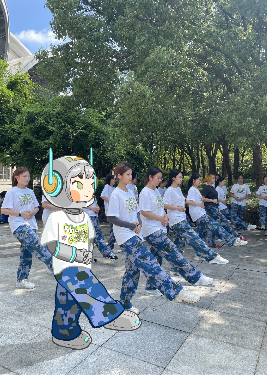 回顾军训历程,从破晓时分的晨光初现,到夕阳西下的霞光满天,艺科艺管学子用汗水调绘出青春最绚丽的色彩。松枝绿勾勒出挺拔脊梁,海军蓝映照着纪律意识,救护白诠释着生命敬畏。数字媒体艺术专业的同学们充分发挥专业特长,用画笔和AI技术记录下这段珍贵时光,将军训体会转化为创意作品。