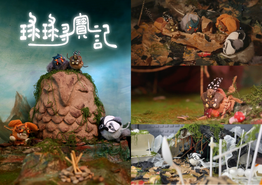 《球球寻宝记》讲述四位主角从发现神秘藏宝图开始,踏上部落之外的冒险旅程。他们穿越险峻峡谷与茂密丛林,执着追寻宝藏的终点,最终却震惊地发现,藏宝图上绘制的目标竟是自己。这场追寻发生在一个由废弃易拉罐、快餐盒构筑基础、草粉与石膏 塑造地貌植被的精巧微缩世界中。在这个真伪交织的人造景观里,主角们的每一步都仿佛被无形目光注视。作品不仅是对被操控人生的深刻隐喻,更完成了角色对自我身份的认知与觉醒 。