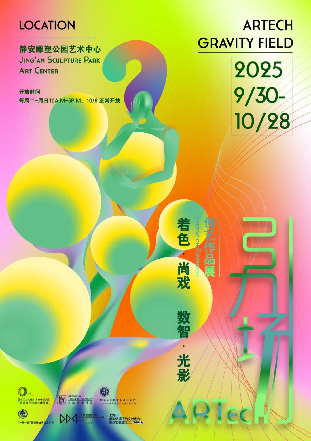 自2022年上海戏剧学院与静安区人民政府启动“公共文化校地共建基地”项目以来,上海戏剧学院舞台美术系的品牌项目“着色”系列便从校园舞台走向城市公园,成为连接学术高地与公共文化空间的重要桥梁。2025年的“ARTECH引力场——创艺作品展”,标志着这一合作迈入新阶段。