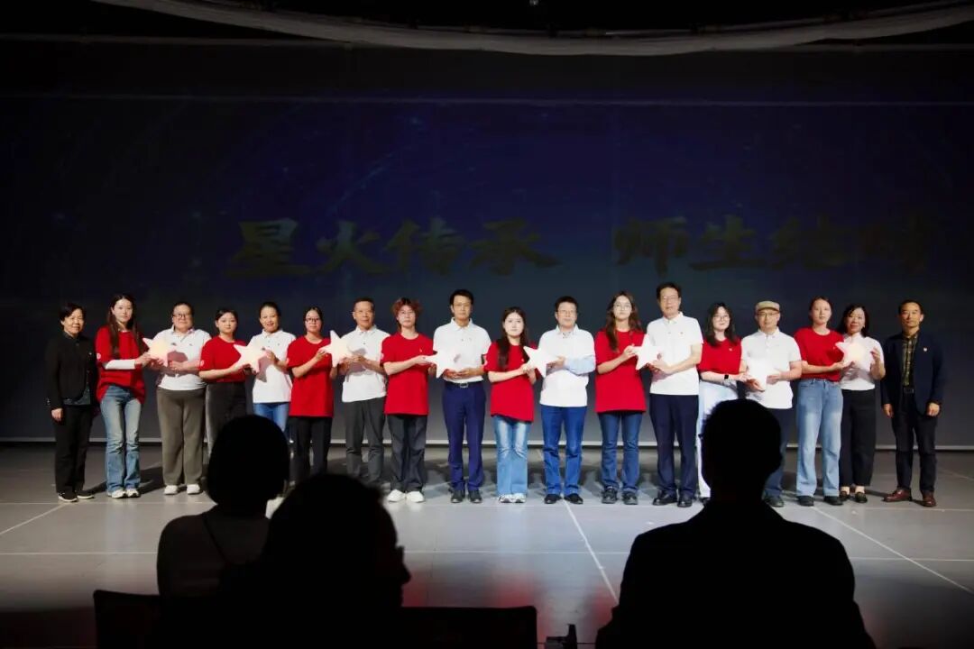 活动高潮出现在“传薪·新时代青年的精神远征”篇章。学院党总支隆重举行了师生结对“星火传递”和“艺科·红星”宣讲团成立仪式。仪式上,校党委副书记胡敏、组织部部长刘春友为结对师生递上“星星”,结对师生在全场的见证下共同点亮象征着理想信念的“艺科红星”,寓意着红色基因的代际传承和精神火种的星火燎原。“艺科·红星”宣讲团由党员导师和优秀学生党员组成,旨在运用专业所长,以青年视角和数字化的创新表达方式,讲好党的故事、传承红色基因、弘扬时代新风。团员们带来首场微宣讲《艺科红星·艺心向党》,以青春之声传递红色信仰。