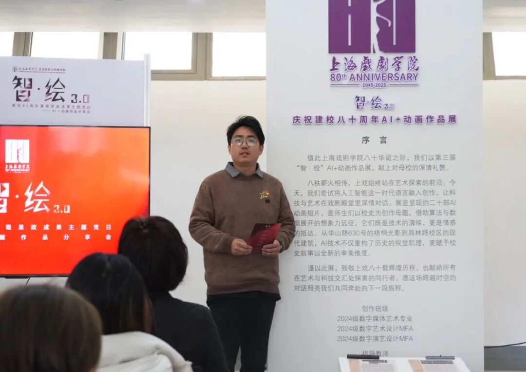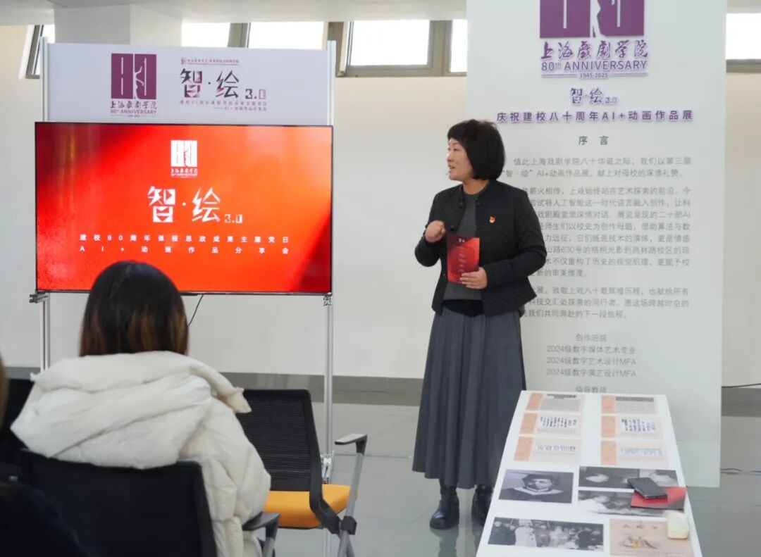 为庆祝上海戏剧学院建校八十周年,将爱党爱国爱校情怀融入育人实践,11月28日,艺术科技与管理学院党总支在昌林路校区成功举办“致敬八十载·智绘新时代”主题党日暨“智·绘3.0”AI+动画课程思政成果分享会。