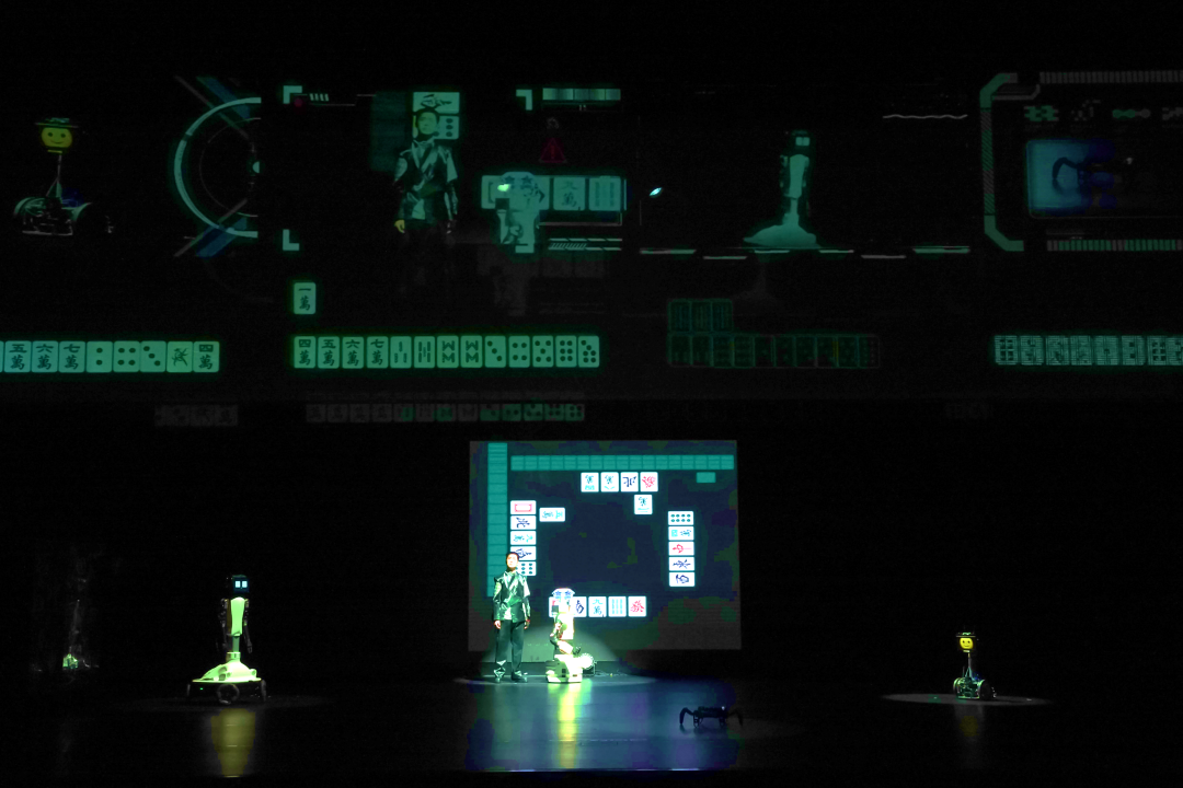 《巨物之城》是未来剧场理念的具象划实践。团队在不同阶段持续逐步引入镜面舞美、双足机器人、VR 互动控制等技术,打造机器人视角与 “记忆” 主题;升级光影系统、优化机器人仿真脸部技术,加入六足机器人与飞行器;借助实时影像捕捉技术和 AIGC 生成动画与音乐,丰富视听层次。该剧秉持 “机器人不是变得像人才有情感,而是因为有情感才像人” 的理念,通过精巧叙事为机器人赋予情感内核,使其成为能与观众共情的鲜活角色。