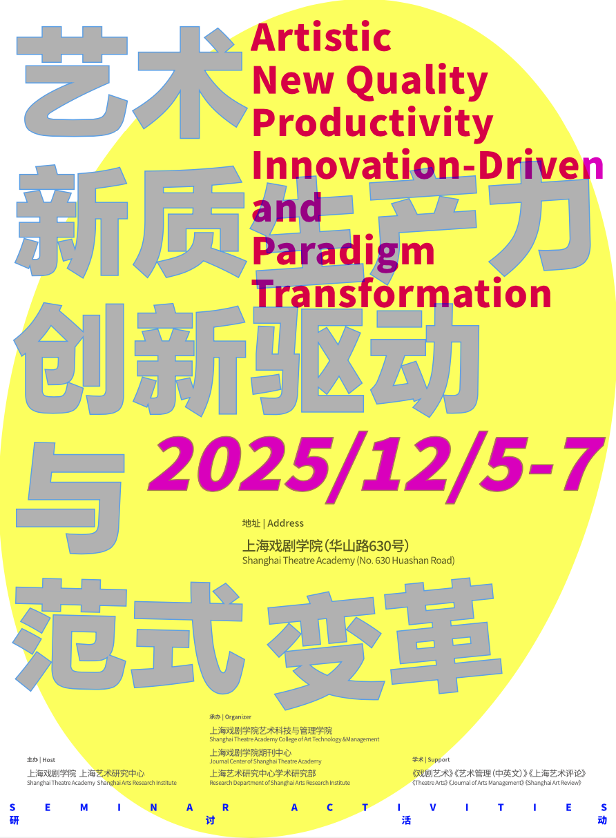 2025年12月5日至7日,由上海戏剧学院与上海艺术研究中心联合主办,上海戏剧学院艺术科技与管理学院、期刊中心及上海艺术研究中心学术研究部共同承办的 “艺术新质生产力:创新驱动与范式变革”学术研讨会,在上海戏剧学院华山路校区成功举办。来自全国顶尖高校、知名艺术院团及领军文化企业的学者、艺术家与行业代表齐聚一堂,围绕科技赋能艺术创作、戏游融合、影游融合、文化数字化等前沿议题展开深度对话,共同探索艺术与科技融合的理论内涵、实践路径与未来愿景。