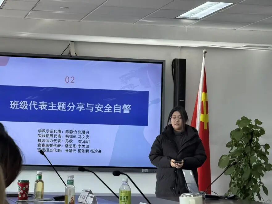 班主任王昕璨老师首先回顾了班级在学风建设、专业实践、集体活动中取得的点滴进步,充分肯定同学们展现出的活力与潜力。她特别强调寒假是衔接学期、自我提升的关键阶段,鼓励大家主动“复盘”,查漏补缺,并为下学期的学习与成长做好前瞻布局。