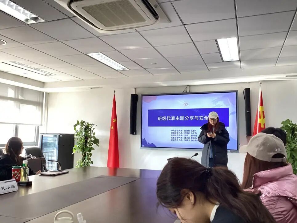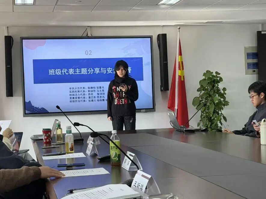 班会既是对过去一学期的成长回顾,也是对未来的规划启程。围绕“学期总结、寒假规划、安全教育”三大主题,学院党总支副书记薛嘉、兼职辅导员陈永东教授、班主任王昕璨、辅导员孔小磊、实习辅导员杨思妮与全体同学共聚一堂,在温暖的交流中凝聚共识,展望前路。