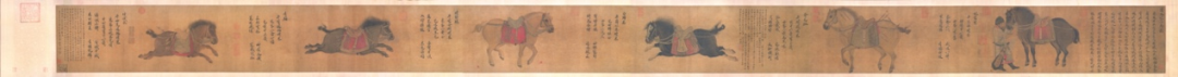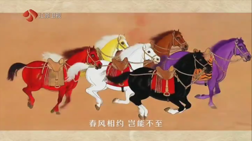 AI作品《六骏驰春》总时长3分26秒,取材于金代画家赵霖创作的绢本设色画的《昭陵六骏图》,该画现藏于北京故宫博物院。该画卷以唐太宗昭陵六骏石刻拓片为原型创作,贞观十年(636年)唐太宗为纪念征战所骑六匹战马,诏令雕刻石屏置于昭陵北阙。赵霖作为金世宗时期画院待诏,在保留石刻原貌基础上进行艺术再创造。全卷分六段绘制六匹战马(分别为飒露紫、拳毛䯄、白蹄乌、特勒骠、青骓和什伐赤),画面通过遒劲笔法和精微设色表现了骏马的动态英姿。