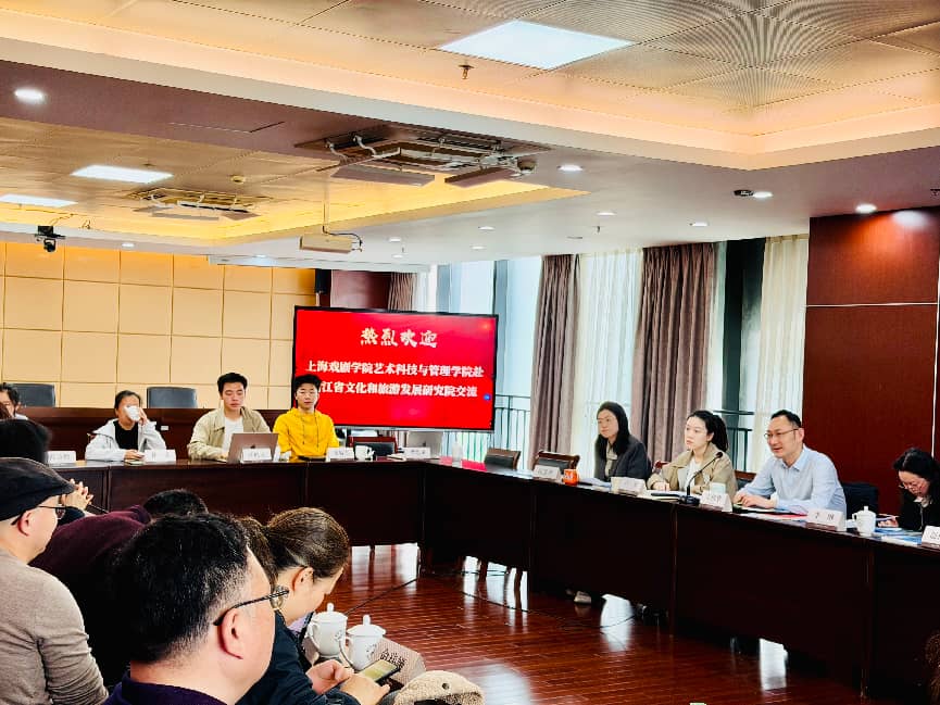 上午,调研团首先到访浙江省文化和旅游发展研究院。执行院长王相华热情接待并主持座谈会,详细介绍了研究院的组织 架构、核心职能,以及在省级文旅政策研究、艺术基金管理、职称评审、演艺新空间建设等方面的丰硕工作成果。作为浙江省文旅厅的重要智库,该研究院深度参与《戏剧振兴三年行动计划》在浙江的落地实施,承担着国家艺术基金浙江管理办公室、舞台艺术“揭榜挂帅”项目等多项重要职能,为戏剧事业高质量发展提供了坚实的政策支撑和智力保障。上戏艺术科技与管理学院党总支副书记唐芳介绍了学院的发展历程、学科设置及科研平台,并明确了本次调研的背景、目的和核心交流议题,为双方高效对接和深度交流奠定了基础。