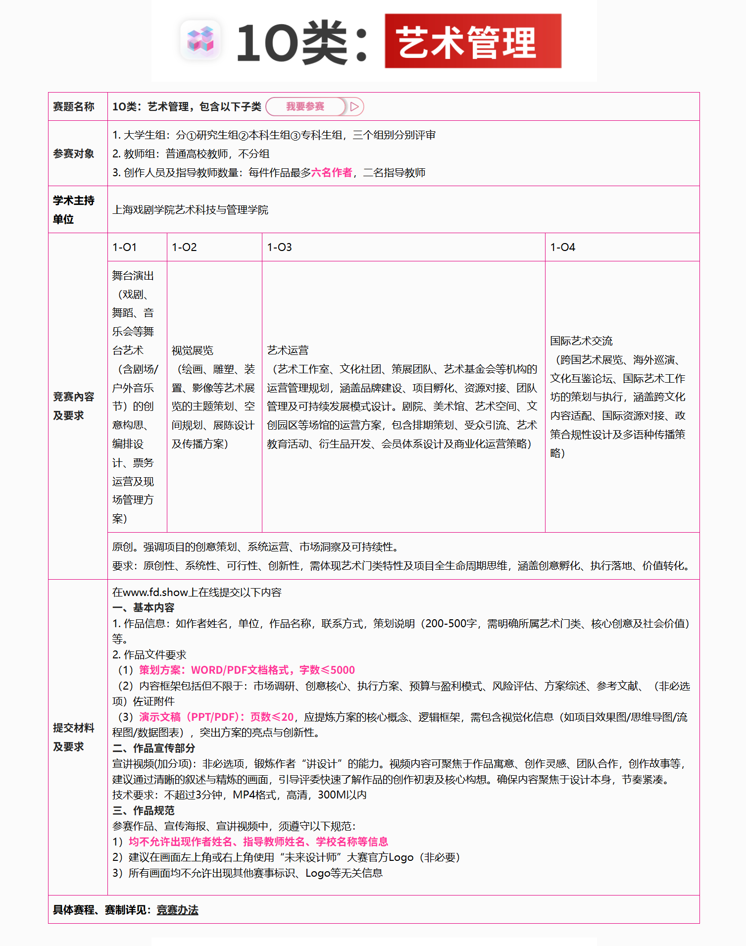要求:原创性、系统性、可行性、创新性,需体现艺术门类特性及项目全生命周期思维,涵盖创意孵化、执行落地、价值转化。