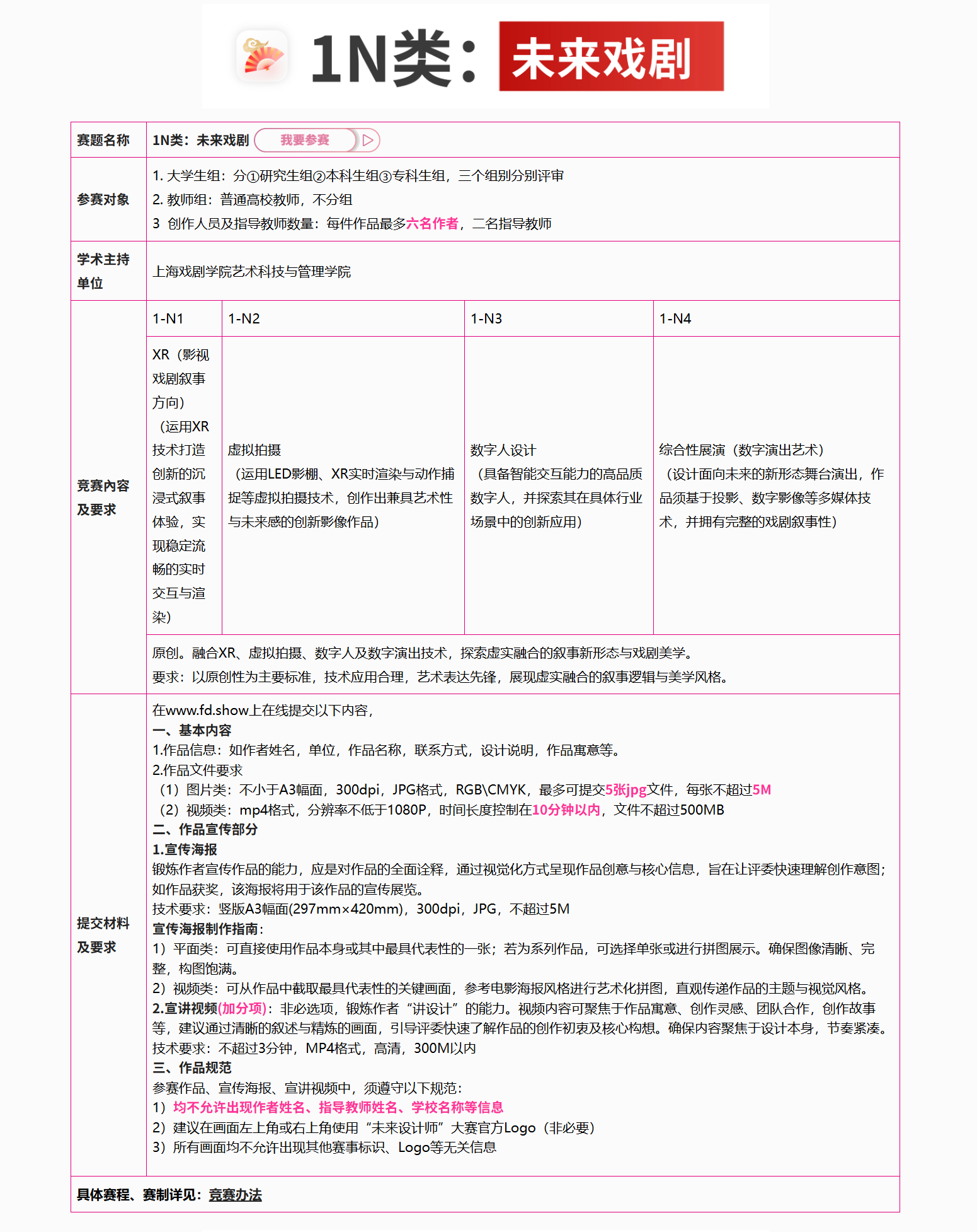 要求:以原创性为主要标准,技术应用合理,艺术表达先锋,展现虚实融合的叙事逻辑与美学风格。